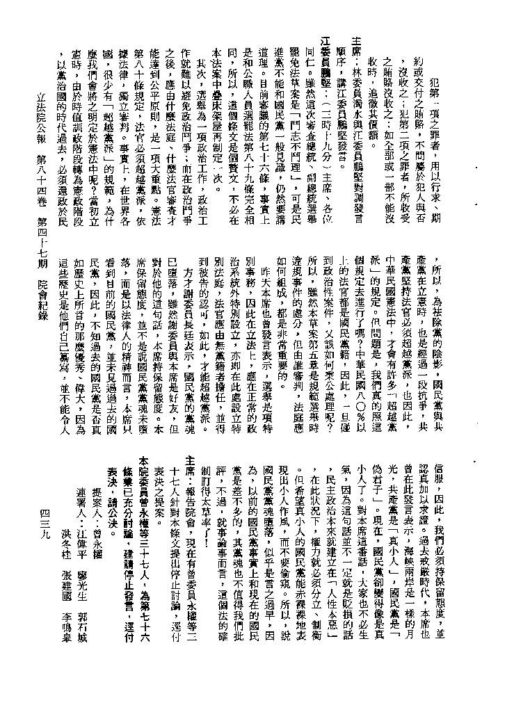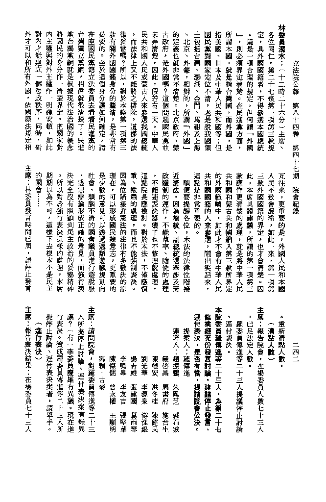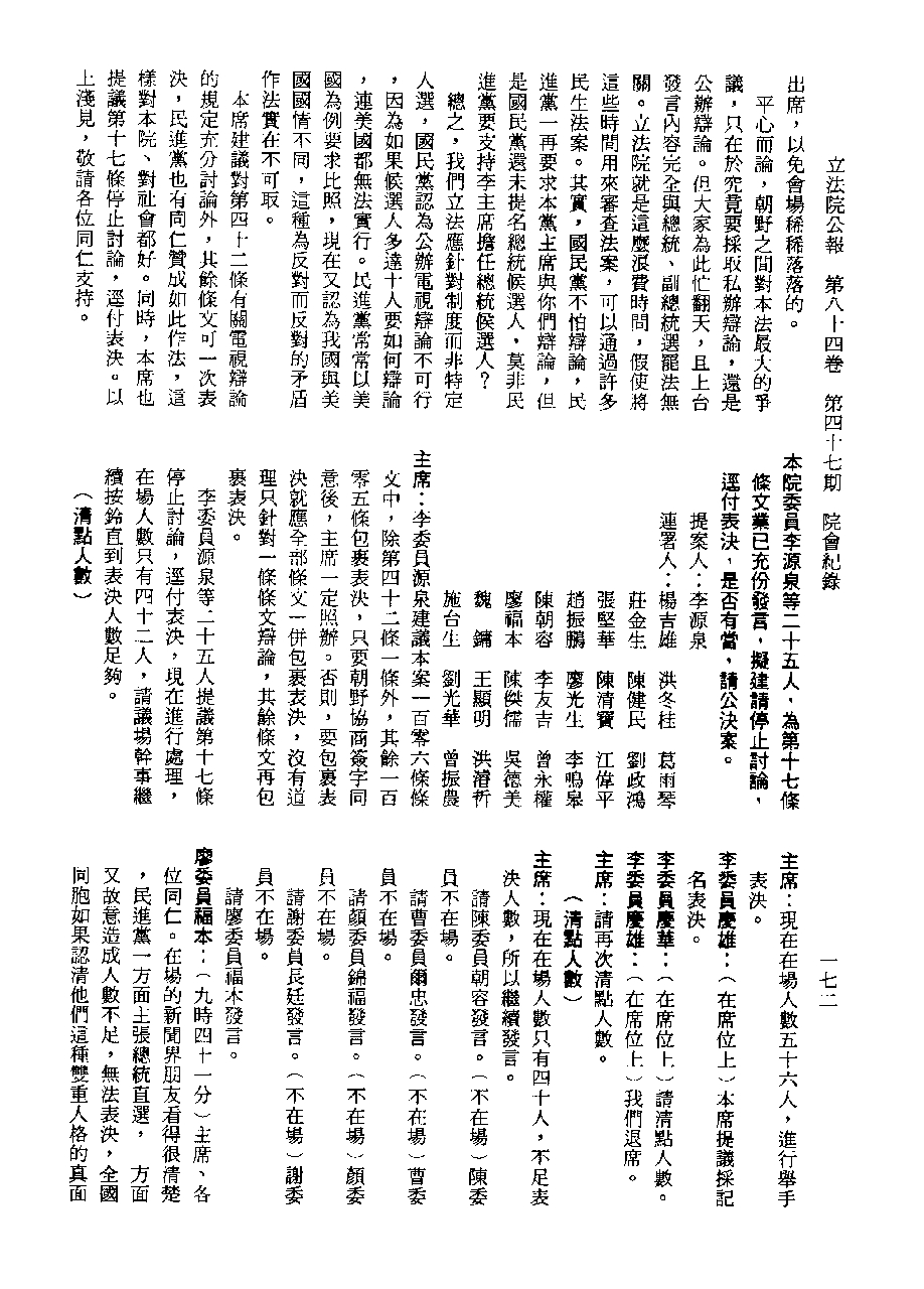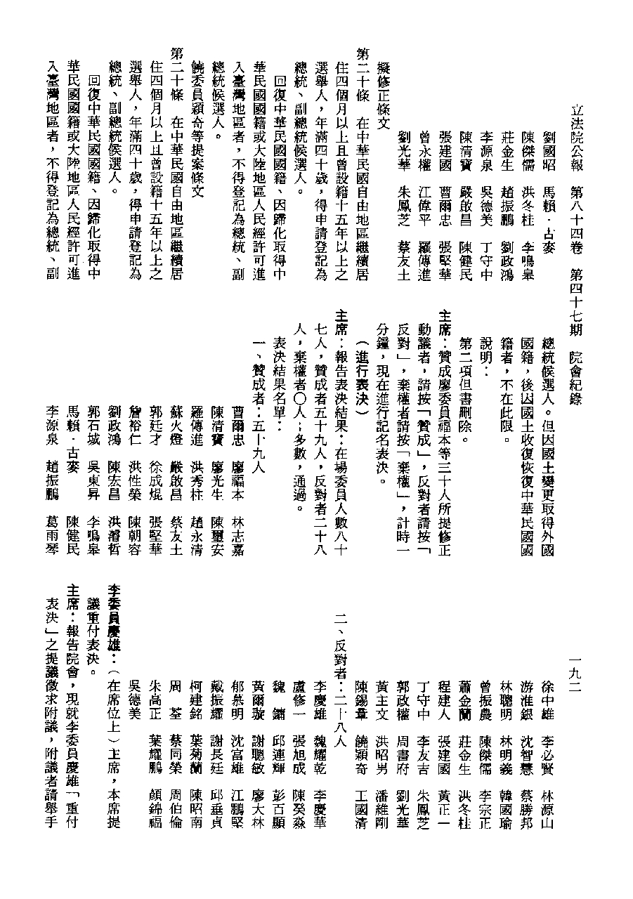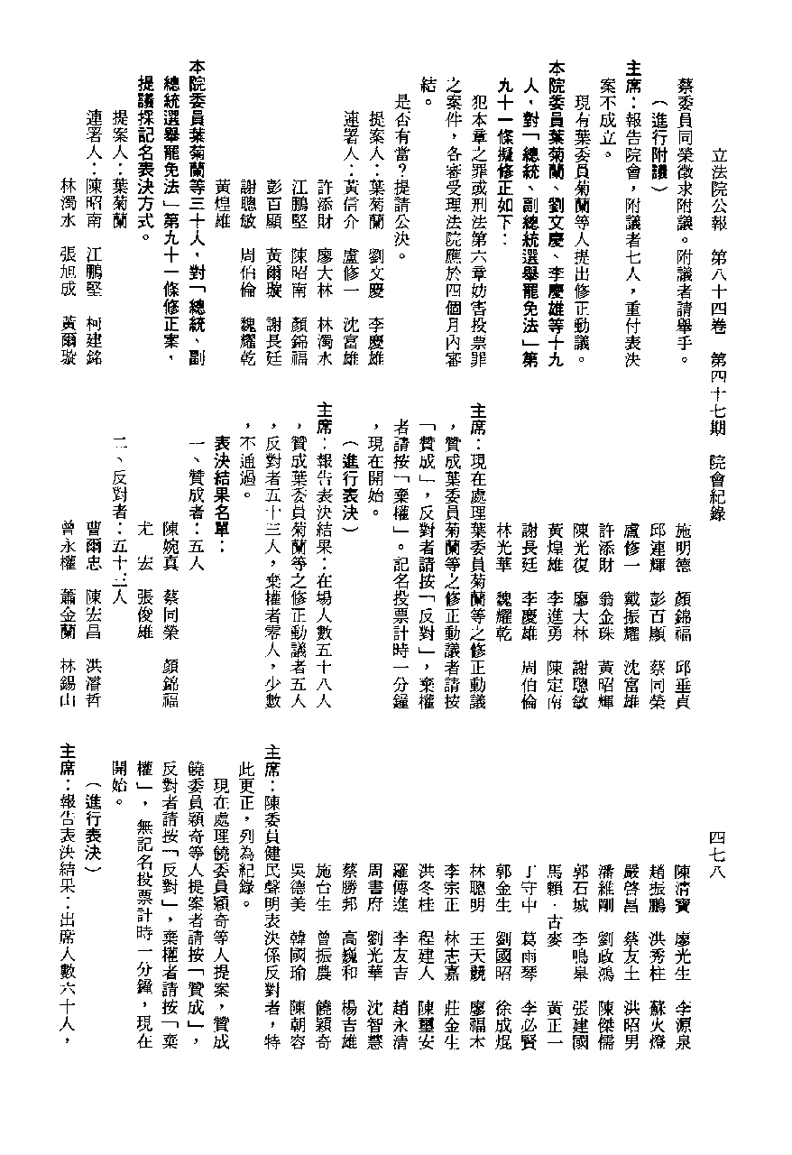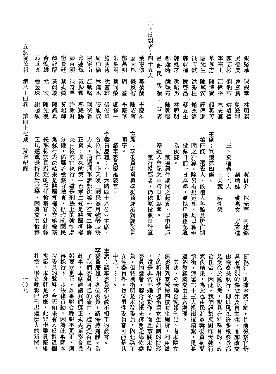 饒穎奇委員等30人提案第2條以下討論及表決經過